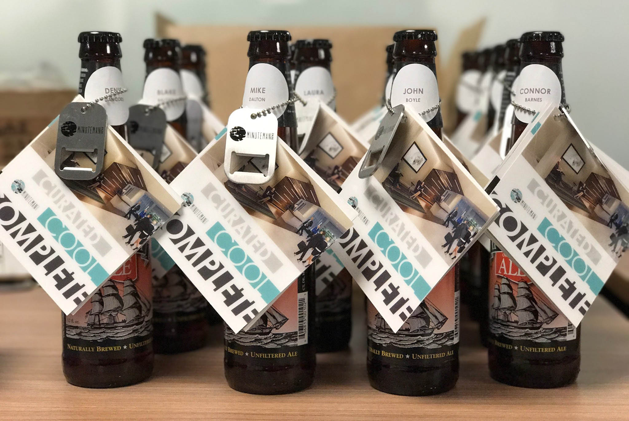 I was tasked with creating invites to an event that celebrated the renovations to the Minuteman building. Since the building caters the Ipswich Beer Van, I decided we should send the invites on beer bottles hung from beer bottle openers with the Minuteman logo. The invite itself highlights all the aspects of the event including party features and giveaways.